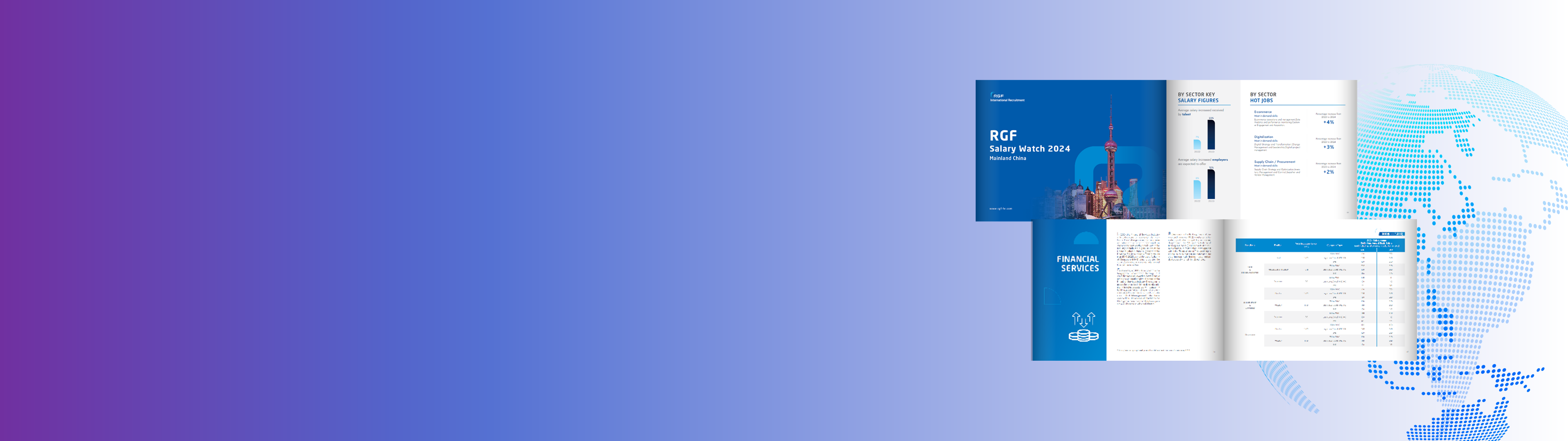 日前,RGF专业人才招聘(中国)(RGF Professional Recruitment China)全新发布了双语版《RGF薪酬观察2024:中国大陆篇》报告(以下称“报告”)。报告的调查结果综合了RGF大中华区自有人才库的数据,针对于该市场的薪资区间、关键薪酬指数、热门职位以及技能需求等方面内容,向企业雇主和求职者呈现了七大主流行业中薪酬变化的不同趋势,包括高科技、互联网与新媒体(TMT)、工业制造、消费品与零售、电子与半导体、金融服务、医疗健康与生命科学以及企业共享职能等。更有新加坡、印度和日本等国家和地区报告陆续发布中,欢迎持续关注我们获取最新信息。